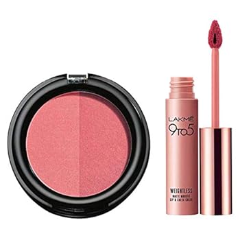 Lakmé 9 to 5 Weightless Mousse Lip and Cheek Color, Plum Feather, 9g And Lakmé Absolute Face Stylist Blush Duos, Rose…