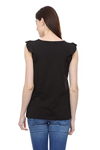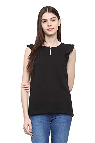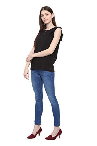 Chic and trendy, this Black top from Solly by Allen Solly is perfect for a weekend getaway. Tailored for a comfort fit, this round-neck design is crafted from fine polyester. Team this top with blue jeans and loafers for a laid-back look.